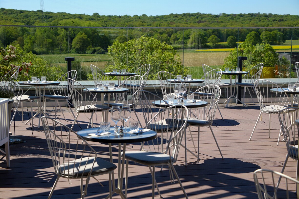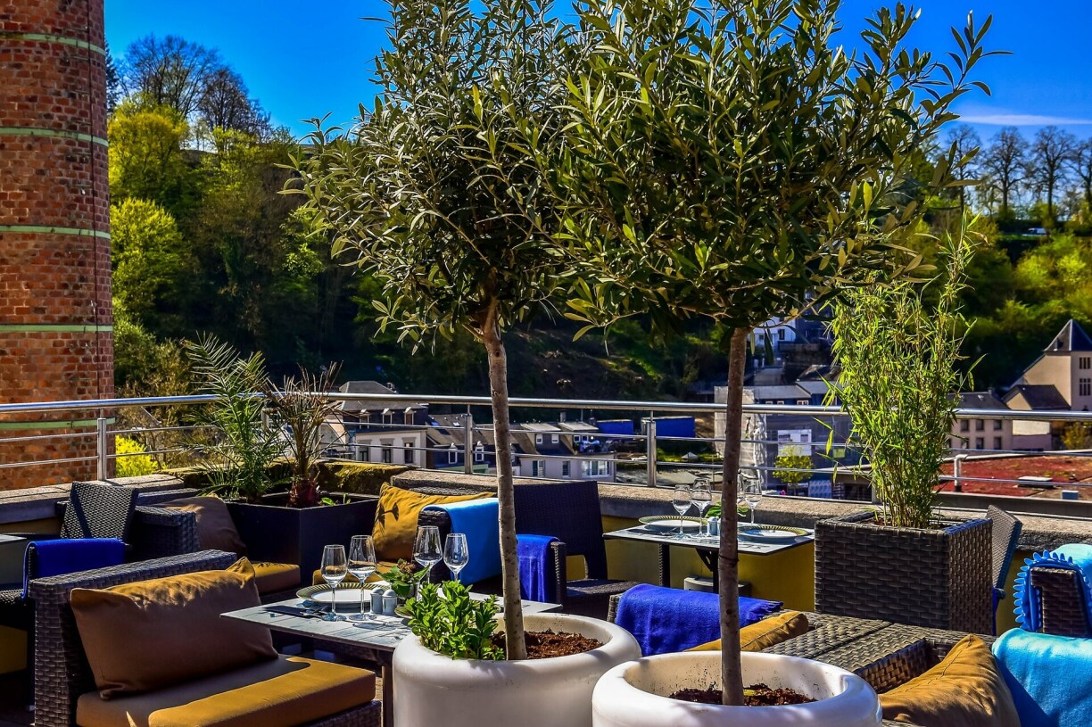La terrasse rooftop proposée par le restaurant Le Sud offre une vue imprenable des Rives de Clausen et le fait dans un cadre raffiné.