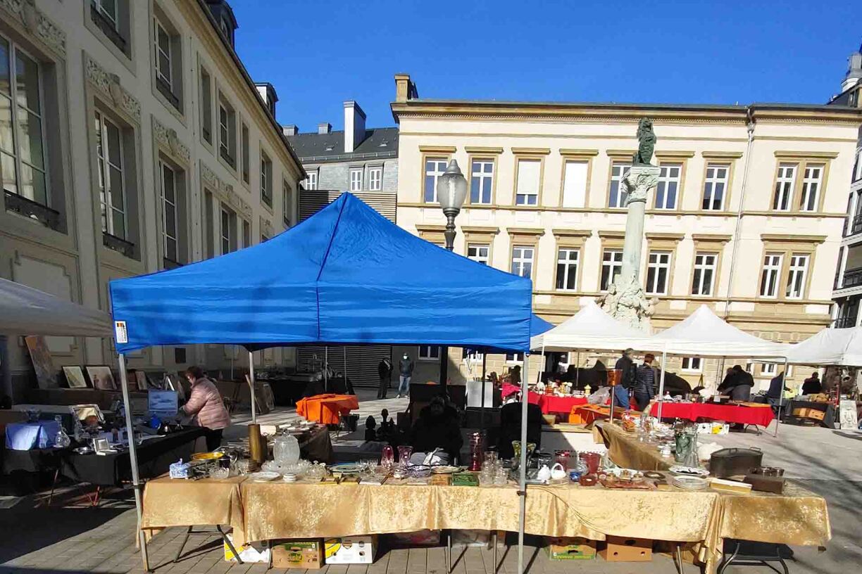 Le Marché à la Brocante sur la place d’Armes en plein centre de la capitale, propose aux chineurs et visiteurs des biens mobiliers non neufs, anciens, originaux et insolites mis en vente par des professionnels, contrairement au vide grenier réservé aux particuliers.