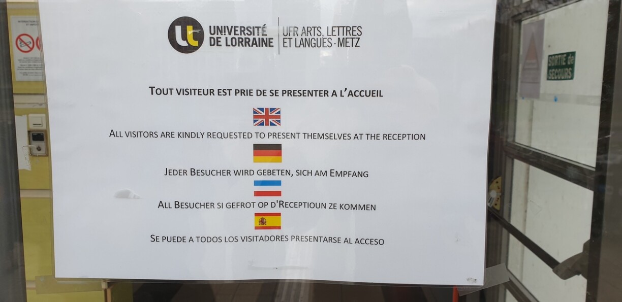 Destination de choix de nombreux étudiants luxembourgeois, l’Université de Lorraine a voulu bien faire en publiant à l’entrée d’un de ses bâtiments un court message pour guider les nouveaux arrivants.