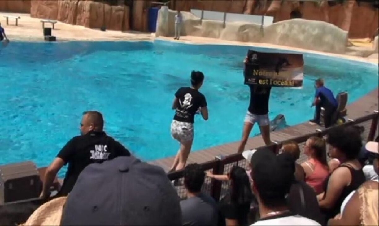 Ça s’est passé samedi dernier, en plein spectacle des dauphins. Plusieurs membres d’un collectif franco-allemand ont fait irruption au bord du bassin, avant de déployer des banderoles hostiles à ce genre d’événement. Le show a été totalement interrompu et le public a été évacué.