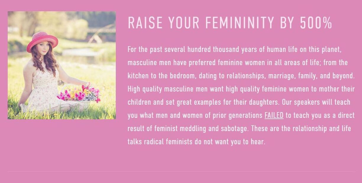 La conférence réservée aux femmes sera précédée d’un événement 100% masculin afin de garantir un avenir positif pour les hommes, les garçons et les pères dans le but de détruire l’establishment féministe.