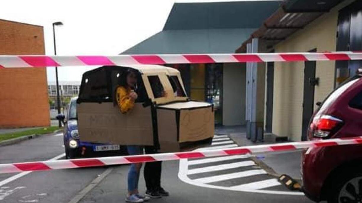 Heureusement, une famille belge de La Louvière a trouvé la parade. La maman en a fabriqué une... en carton et ça a marché ! La famille a pu être servie après avoir posé pour quelques clichés même avec les forces de l’ordre qui ont autorisé la petite famille à rester dans la file.