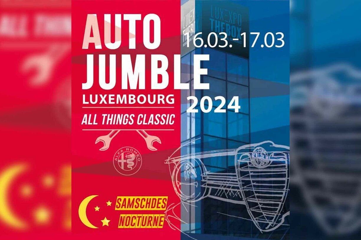 Exposition de véhicules historiques à la LuxExpo The Box à Luxembourg-Kirchberg: pièces de rechange, stands d’exposition, miniatures etc