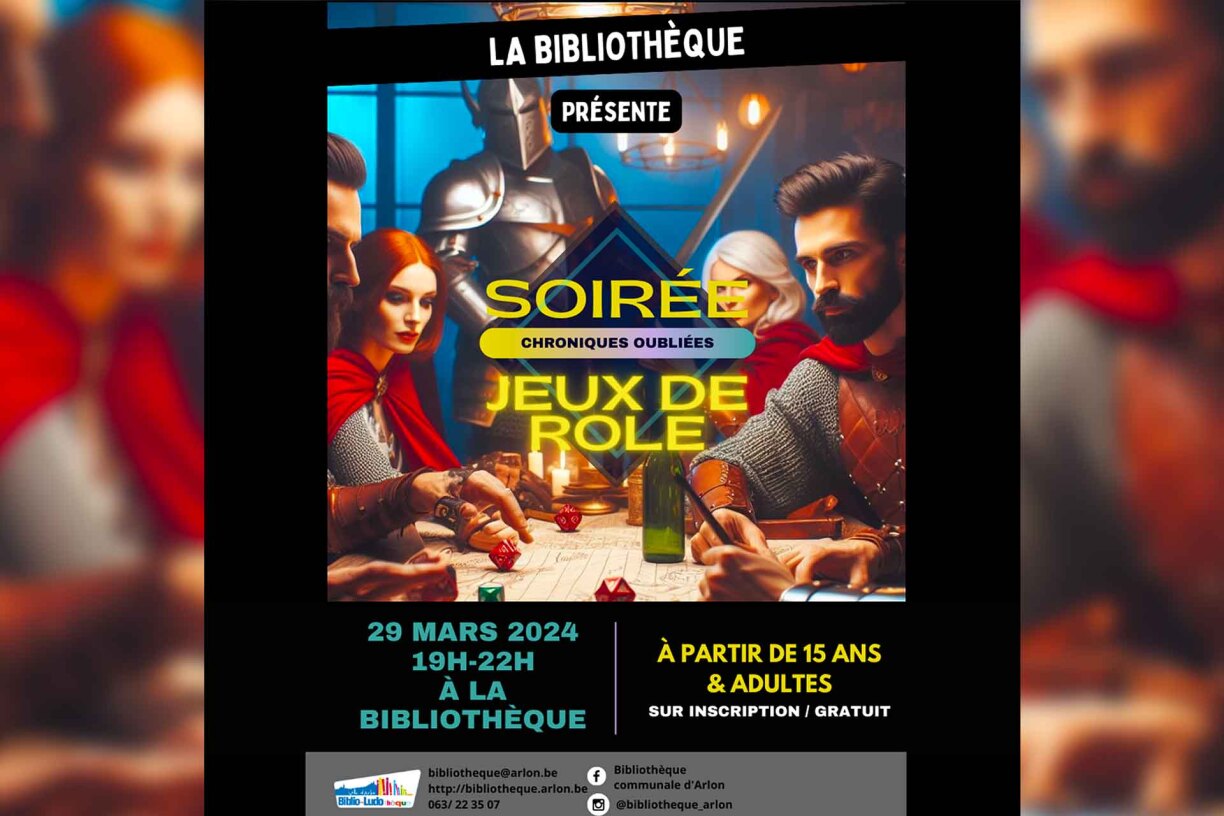 Le Jeu de Rôle s’invite à la bibliothèque ! Après une courte pause, l’aventure continue. La prochaine session de jeu de rôle aura lieu le 29 mars 2024. Assurez-vous de venir équipé(e)s de votre créativité et de votre esprit d’aventure. Inscription obligatoire.