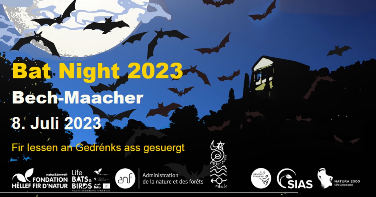 Une agréable session de bricolage a lieu ce week-end. Les enfants se réunissent à Bech-Kleinmacher pour construire des abris pour les chauves-souris, observer leur nourriture à travers un microscope, réaliser des bricolages autour du thème des chauve-souris, et même rencontrer une colonie. Puis, aux alentours de 22 heures, le groupe ira se balader afin de découvrir les chauves-souris en utilisant un appareil spécial.