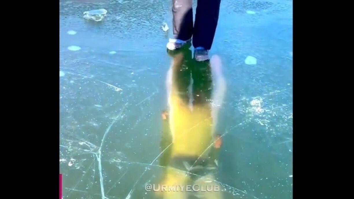 La vidéo horrifiante montre un homme qui tente de nager vers le trou de sortie sous la glace, mais on le voit perdre son orientation.