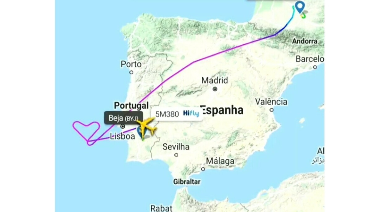 Une tendance qui a sûrement inspirée la compagnie portugaise Hi Fly! Samedi dernier, l’un des pilotes a carrément dessiné un cœur avec un Airbus A380. Parti de l’aéroport de Beja, il a multiplié les boucles et les détours pour former ce cœur à 40.000 pieds d’altitude, avant de rejoindre Toulouse.