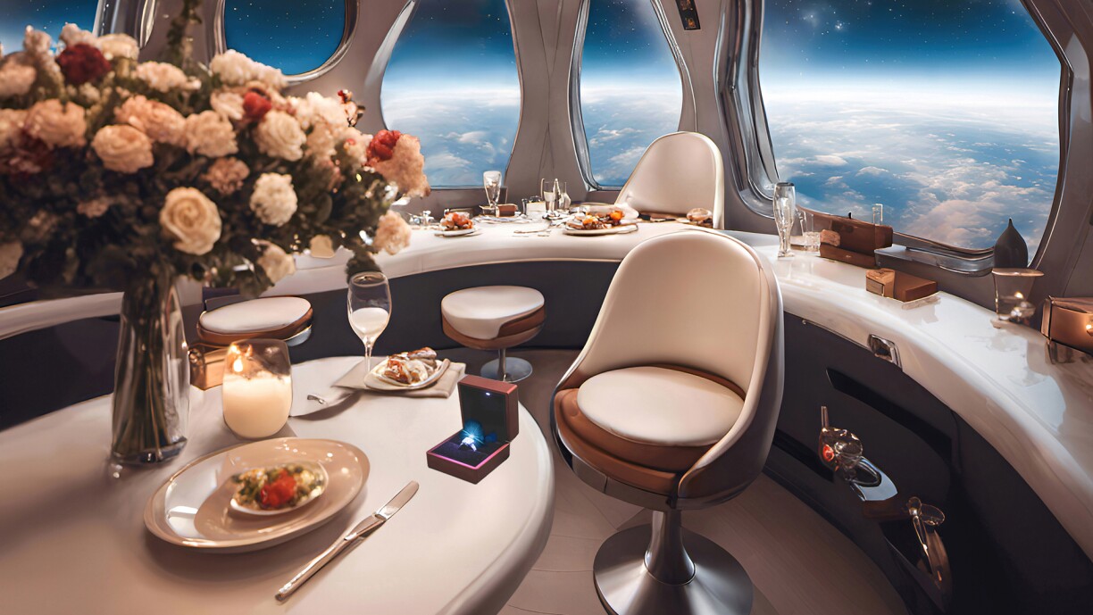 L’agence ApoteoSurprise, spécialisée dans la conception de demandes en mariage extravagantes, lance une toute nouvelle prestation permettant aux amoureux de déguster un repas concocté par un chef étoilé français et servi par un robot à 35 km d’altitude. Et donc de faire sa demande en mariage en dinant dans l’espace.