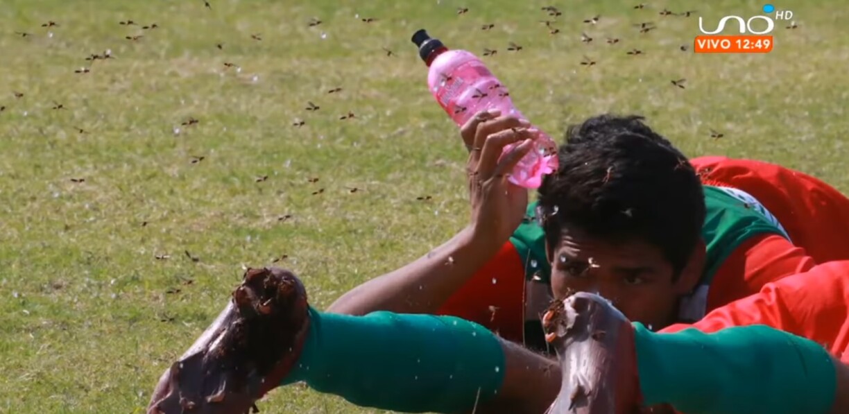 C’est en plein match que des abeilles ont commencé à envahir le secteur et attaquer, sans raison apparente, les joueurs dans le stade Edgar Pena Gutierrez.
