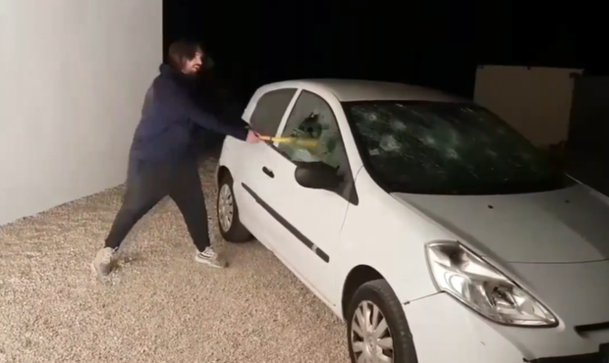 Armé d’une mini-batte de baseball, il a détruit le pare-brise, les vitres et une partie de la carrosserie de son véhicule.