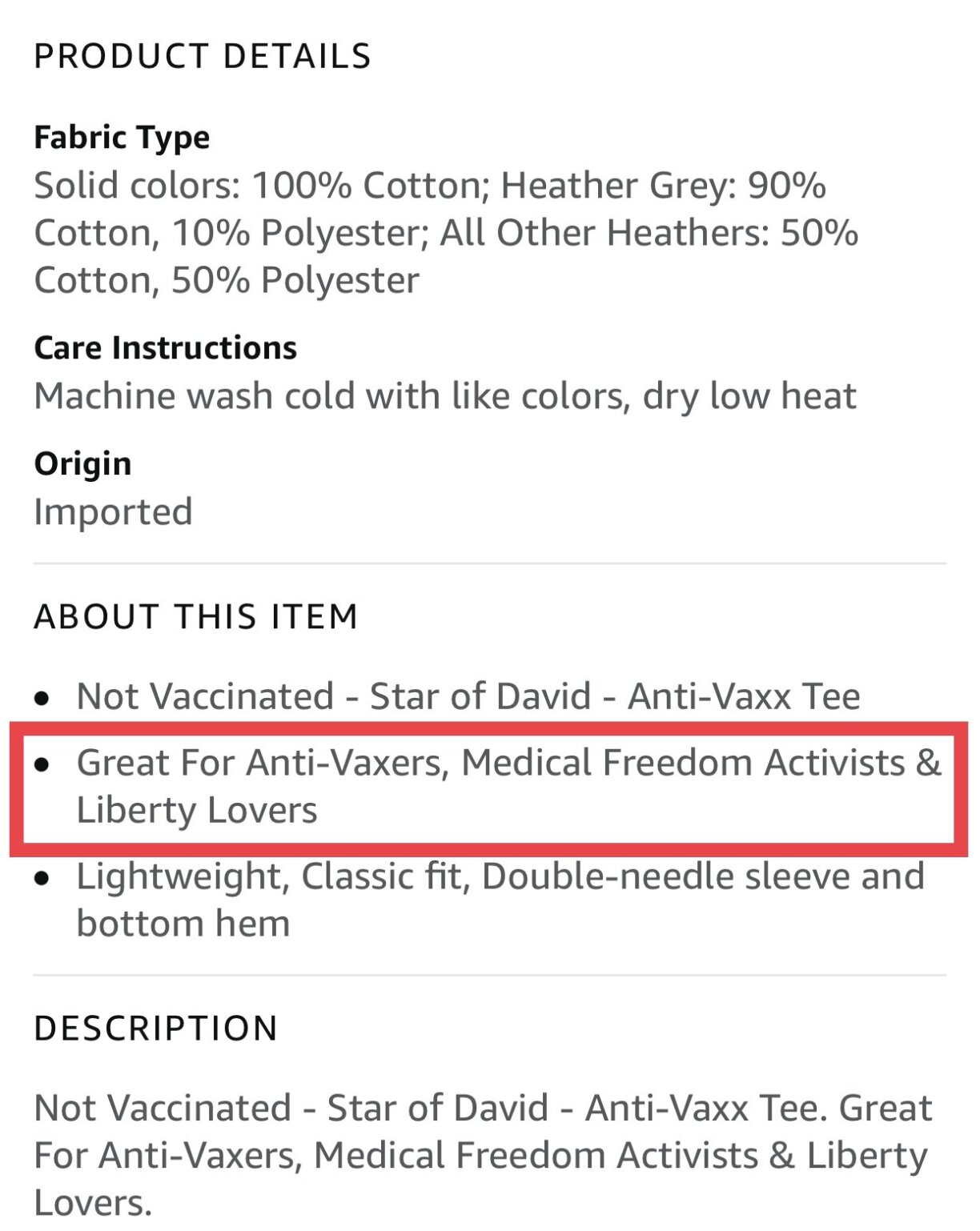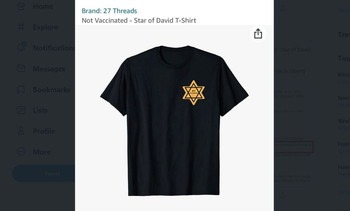 Comme l’ont relevé nos confrères de BFMTV, c’est un internaute qui a repéré l’annonce douteuse du t-shirt affichant le texte “non vacciné” dans une étoile jaune. Un produit “vendu et expédié par Amazon”. L’étoile jaune, devenue le symbole très controversé des anti-vaccins, sert de parallèle par ces personnes entre les crimes nazis et la “dictature sanitaire” qu’ils critiquent.