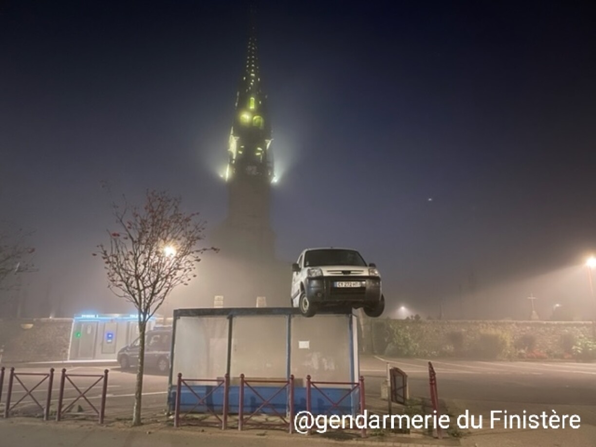 Il fallait le voir pour le croire. Dans le Finistère, des témoins ont retrouvé une camionnette blanche perchée... Sur un abri de bus.