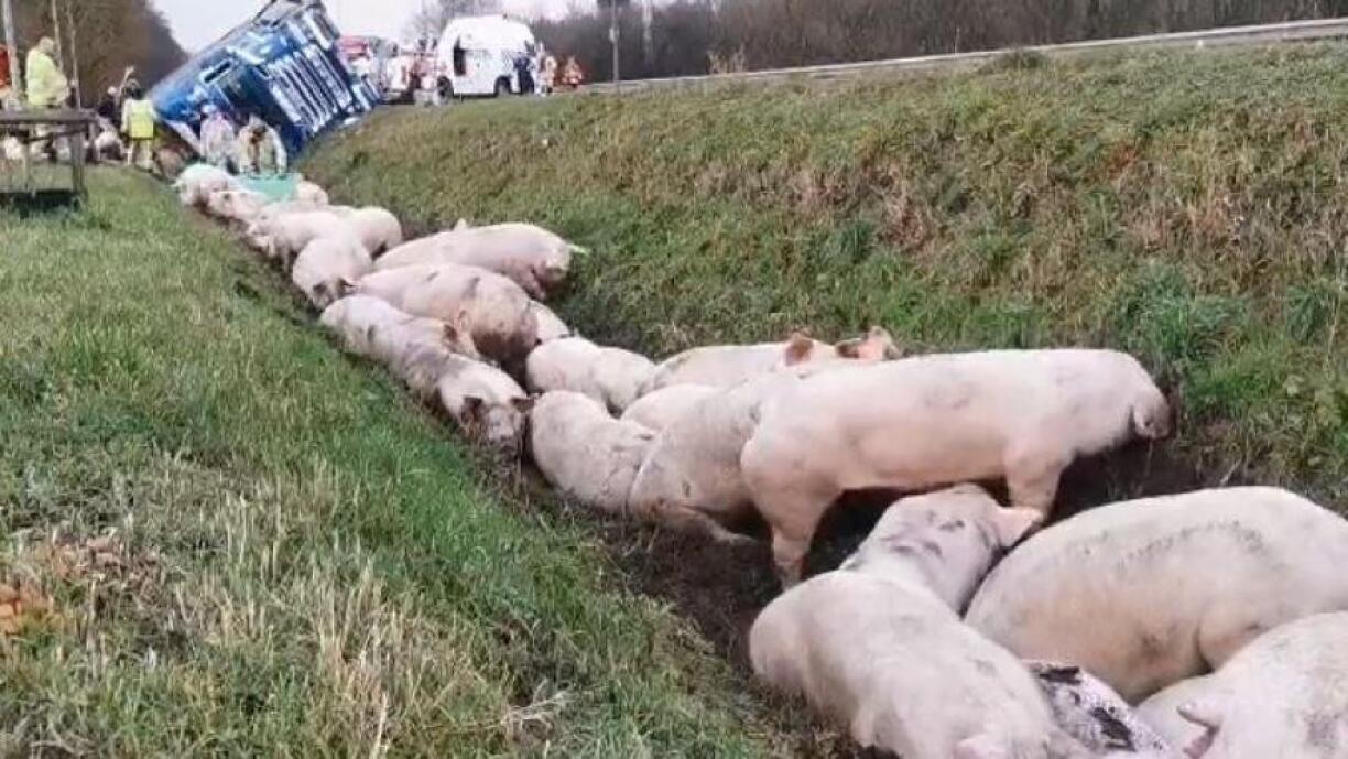 Le véhicule qui transportait des porcs a commencé à déraper pour une raison encore inconnue, avant d’atterrir dans le fossé. Selon les premières informations, aucun autre véhicule n’a été impliqué dans l’incident.