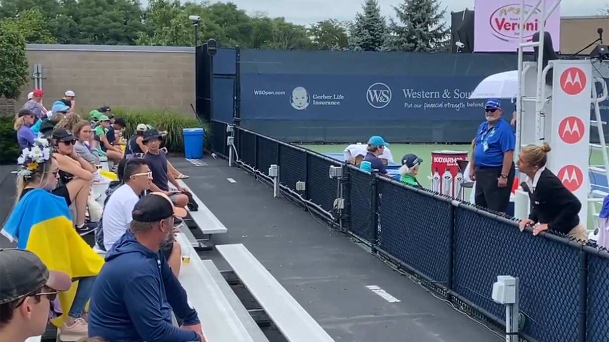 Lors du duel entre les joueuses russes Anna Kalinskaya et Anastasia Potapova, une supportrice est allée s’installer dans les gradins avec un drapeau ukrainien entre les mains. Elle l’a installé sur ses épaules et a commencé à regarder le match avec ce drapeau, sans toutefois manifester ou faire le moindre bruit parasite.