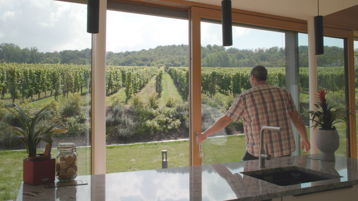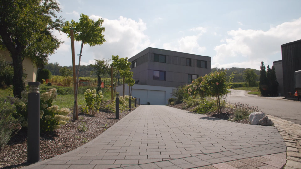 Nous sommes tous les deux originaires de la Moselle et nous pouvions difficilement imaginer vivre à un endroit où il n’y a pas de vignes. Je viens moi-même d’une famille de viticulteurs et nous avons eu la grande chance, quand nous avons dit que nous aimerions construire, que mes parents aient acheté ce terrain trente ans auparavant et ils nous l’ont donné pour pouvoir construire. Et nous avons ainsi eu la chance de créer une maison au milieu des vignes, où nous sommes heureux de pouvoir habiter.