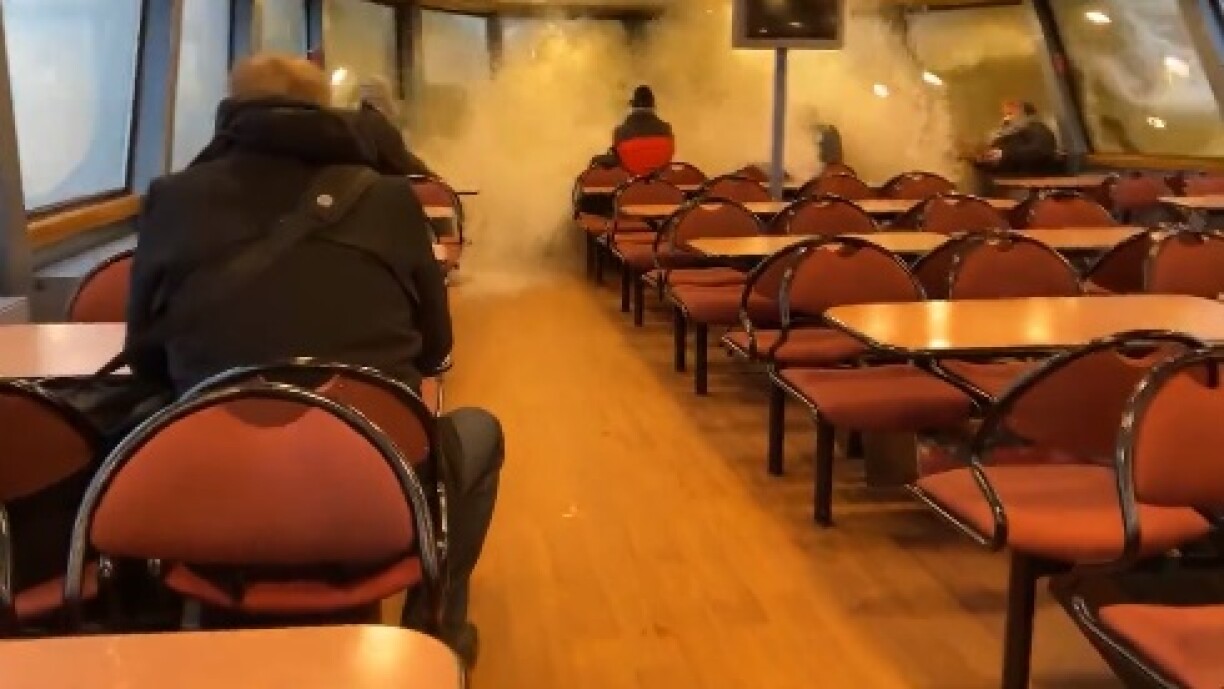 Une vidéo tournée jeudi sur un ferry montre comment les rafales de vent et les vagues ont éparpillé en morceaux les vitres d’un ferry. Plusieurs personnes étaient à bord et ont dû quitter la cabine. L’incident n’a heureusement pas fait de blessé.