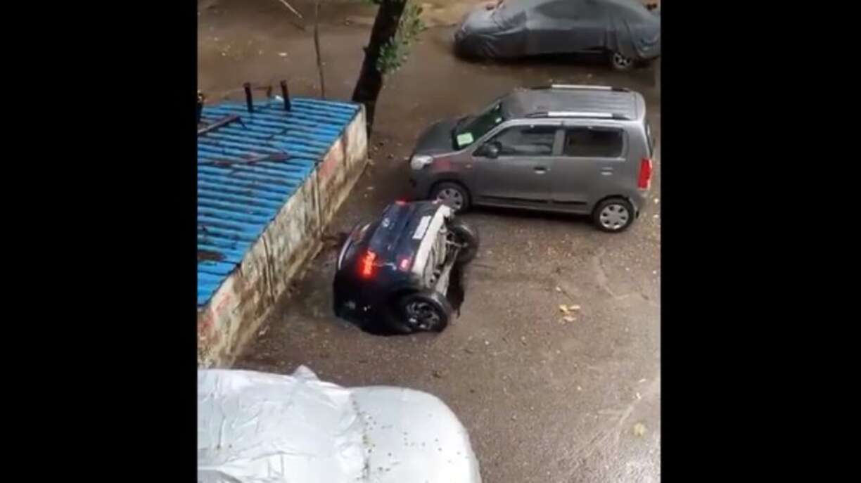 Une voiture a été complètement “avalée” par le bitume sur un parking résidentiel de Mumbai, à Ghatkopar. L’association des résidents a expliqué que le parking en question a été aménagé au-dessus d’un ancien puits. Avec les fortes pluies qui se sont abattues sur le pays ces derniers jours, le bitume a cédé sous le véhicule, qui s’est retrouvé le capot dans l’eau, avant de disparaitre totalement.