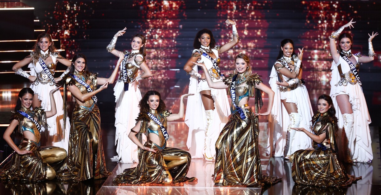 Les candidates ont défilé en tenue de soirée, en maillot de bain ou en costume. Le traditionnel tableau régional a mobilisé la Garde républicaine. Une séquence était dédiée au discours des 12 demi-finalistes.