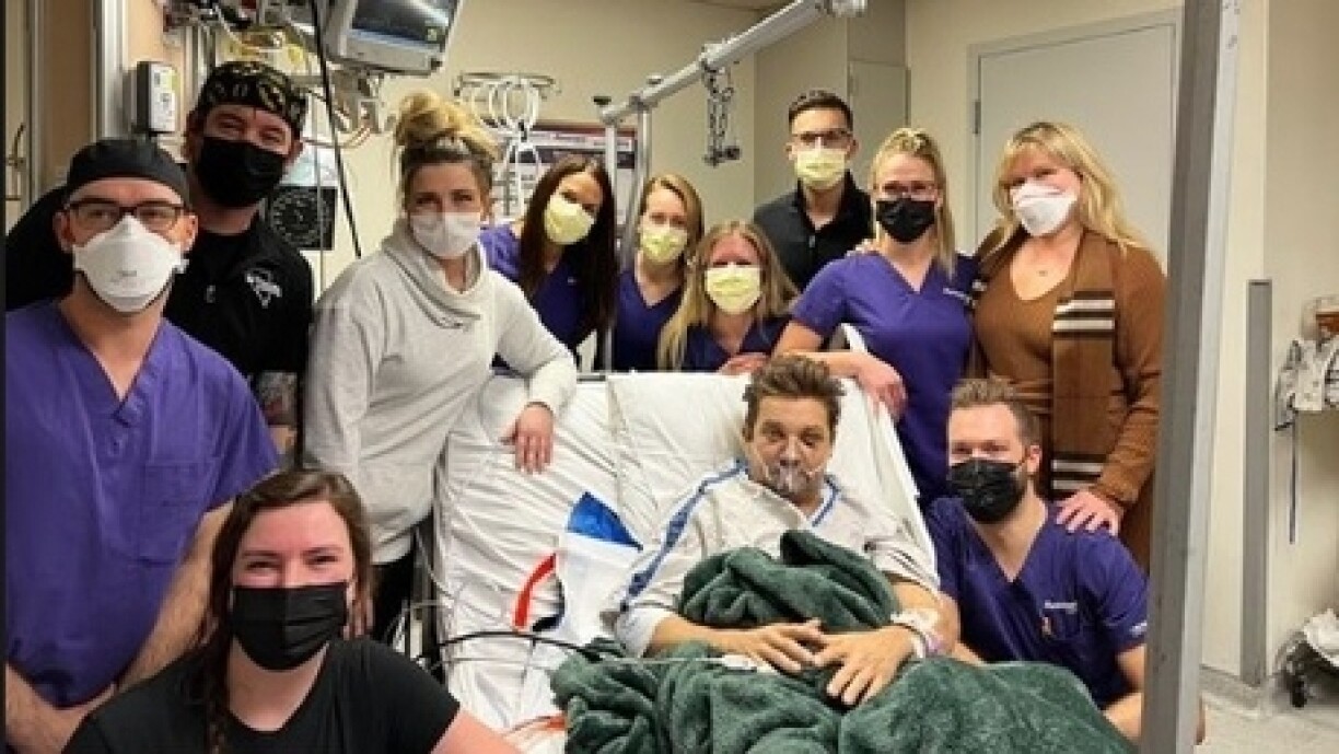 Il peut dire merci aux soignants qui s’occupent de lui. L’acteur américain Jeremy Renner a publié vendredi soir une photo le montrant dans son lit d’hôpital, entouré de nombreux médecins.