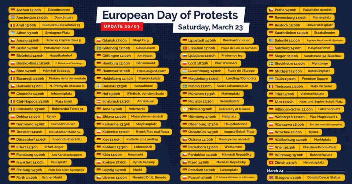 “Les articles 11 et 13 introduisent une forme claire de censure” selon Sam Grüneisen de l’association “Chaos Computer Club”. Une centaine de personnes étaient réunies Place de l’Europe pour montrer leur mécontentement, les jeunesses politiques étaient également présentes.