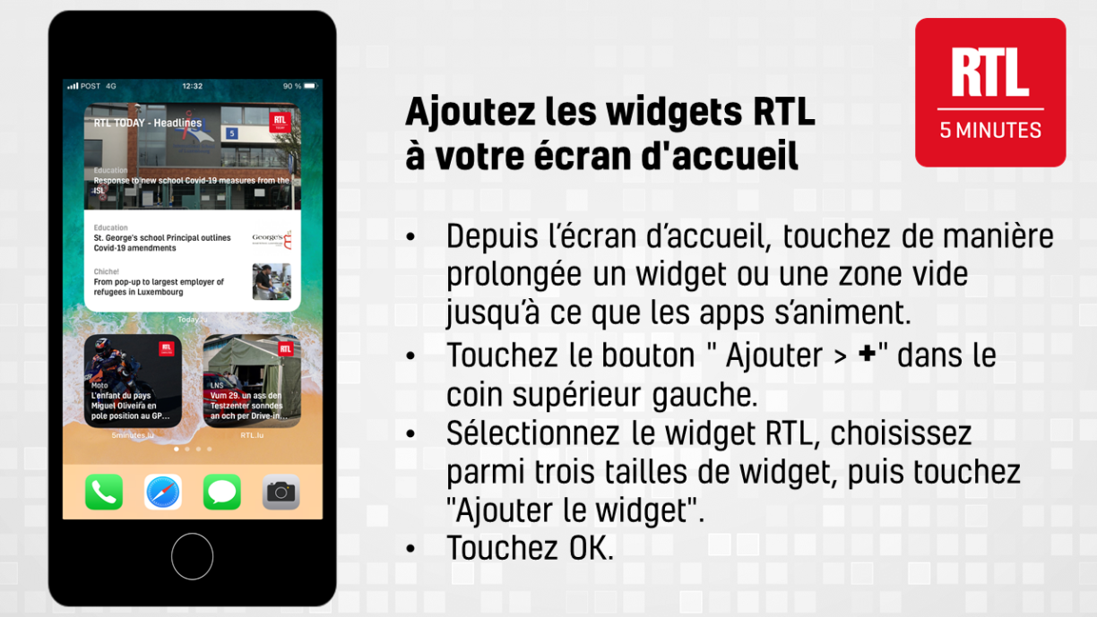 RTL.lu (en luxembourgeois), RTL 5minutes (en français) et RTL Today (en anglais) disposent désormais de leurs propres widgets pour iOS 14. Ces nouveaux widgets permettront aux utilisateurs d’outils Apple d’obtenir en un coup d’œil toutes les infos à la une depuis les applications RTL.