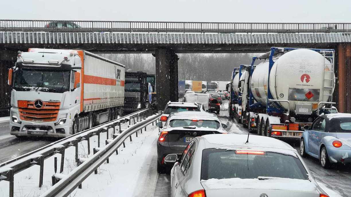 Les conditions météo, mais aussi des poids lourds, arrêtés dans les montées, des accrochages et des voitures en panne ont considérablement ralenti le trafic vers le Luxembourg. Des camions ont bloqué pendant près d’une heure la traversée de Thionville, dans le sens inverse, car ils étaient cloués sur la courte montée du viaduc de Beauregard.