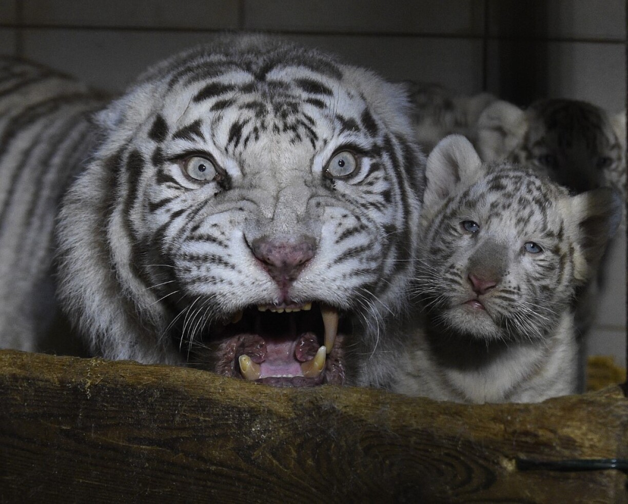 Trois tigres blancs, baptisés Aran, Hyun et Fouyou, sont nés le 5 janvier au zoo d’Amnéville, un événement rare pour cette espèce “qui n’a pas été vue à l’état sauvage depuis les années 1950", a-t-on appris lundi auprès du parc animalier.