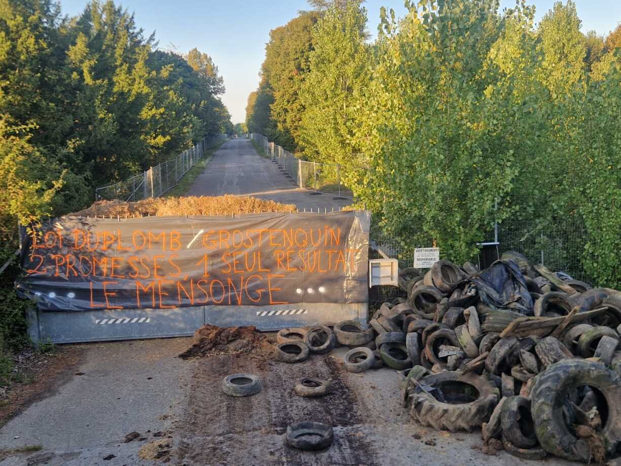 “Loi Duplomb/Grostenquin: 2 promesses, 1 seul résultat: le mensonge”, ont-ils écrit dimanche sur une banderole bloquant l’accès à la base, d’après une photo publiée par le syndicat sur ses réseaux sociaux.