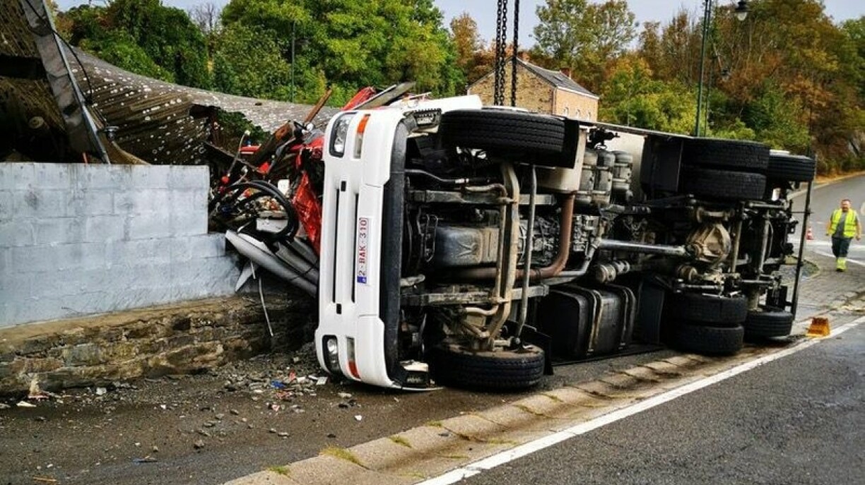 L’accident a eu lieu à Tellin, au niveau de la sortie du rond-point Grupont. Le poids-lourd est parti à la renverse, percutant un poteau électrique et une véranda au passage.
