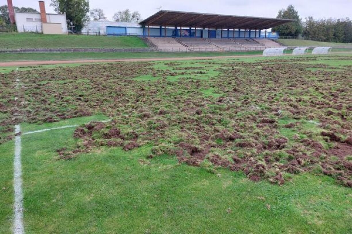 Mauvaise surprise pour les footballeurs de Joeuf, ville de Meurthe-et-Moselle. Durant la soirée de samedi, une horde de sangliers s’est invitée sur le rectangle qui n’est pas resté vert très longtemps. L’étendue des dégâts a été constatée le dimanche matin: un tiers du terrain d’honneur a été entièrement retourné a confié le vice-président du club Hervé Thierry à nos confrères de France Bleu.