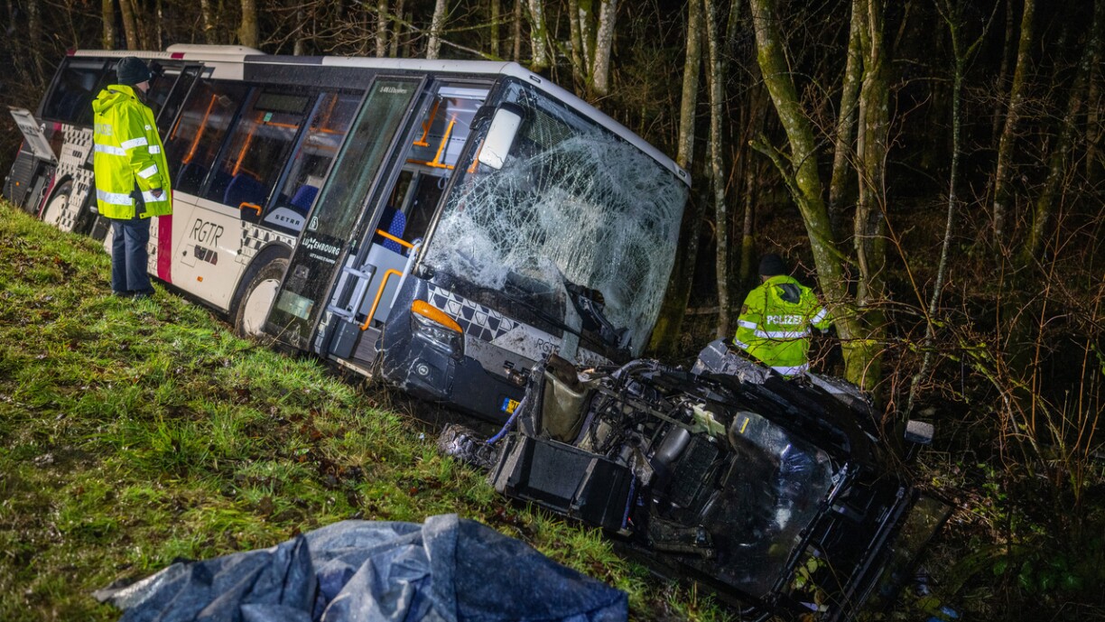Un bus de ligne luxembourgeois a percuté de plein fouet une voiture faisant au moins quatre blessés. Le pronostic vital de l’automobiliste est engagé, selon la police de Wittlich, alors que le conducteur du bus a été grièvement blessé. Les deux passagers de la voiture ont été légèrement blessés.