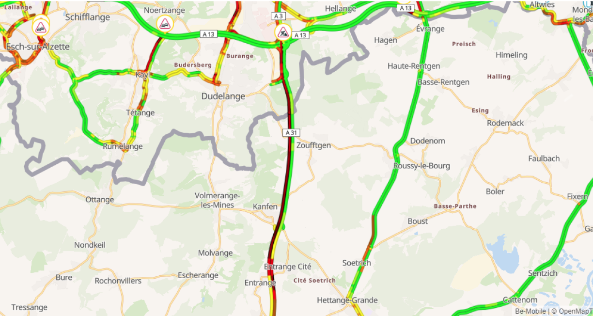 Pour éviter de se lancer vers l’A31 depuis l’A3 luxembourgeoise, le CITA conseille un itinéraire alternatif qui passe par l’A4/B40 Luxembourg - Esch/Belval - Audun-le-Tiche ou l’A13 via Frisange.