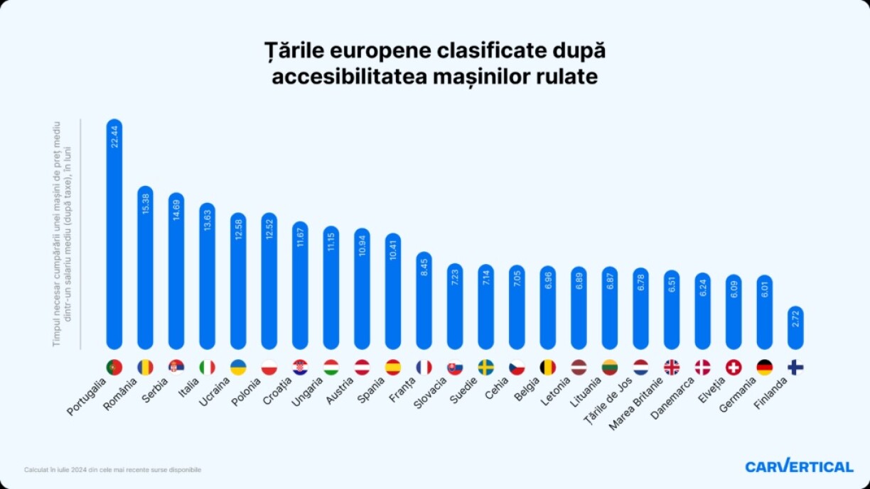Pour mieux comprendre ce que cela représente pour les automobilistes européens, l’entreprise spécialisée dans les données automobiles carVertical s’est intéressée au nombre de mois de travail nécessaires dans 23 pays européens (sans le Luxembourg hélas) pour acquérir une voiture d’occasion.