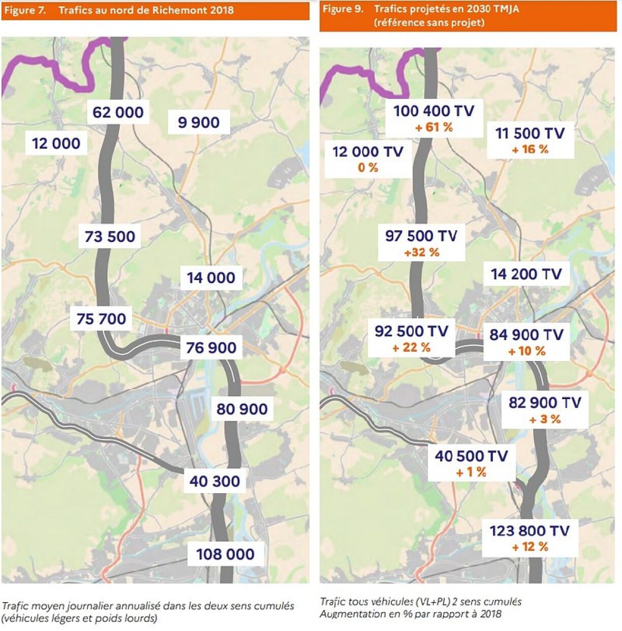 Tout en épargnant Florange, le bois de l’Étoile ou encore le site du château de Bétange, le statu quo a le désavantage de conduire inévitablement à la saturation encore plus importante de l’autoroute. Selon les projections de la Dreal, le trafic va exploser sur l’autoroute: +60% à hauteur de Kanfen d’ici huit ans, portant à 100.000 le nombre de véhicules circulant chaque jour dans les deux sens. Et 8.000 et 17.000 véhicules de plus avant et après Thionville.