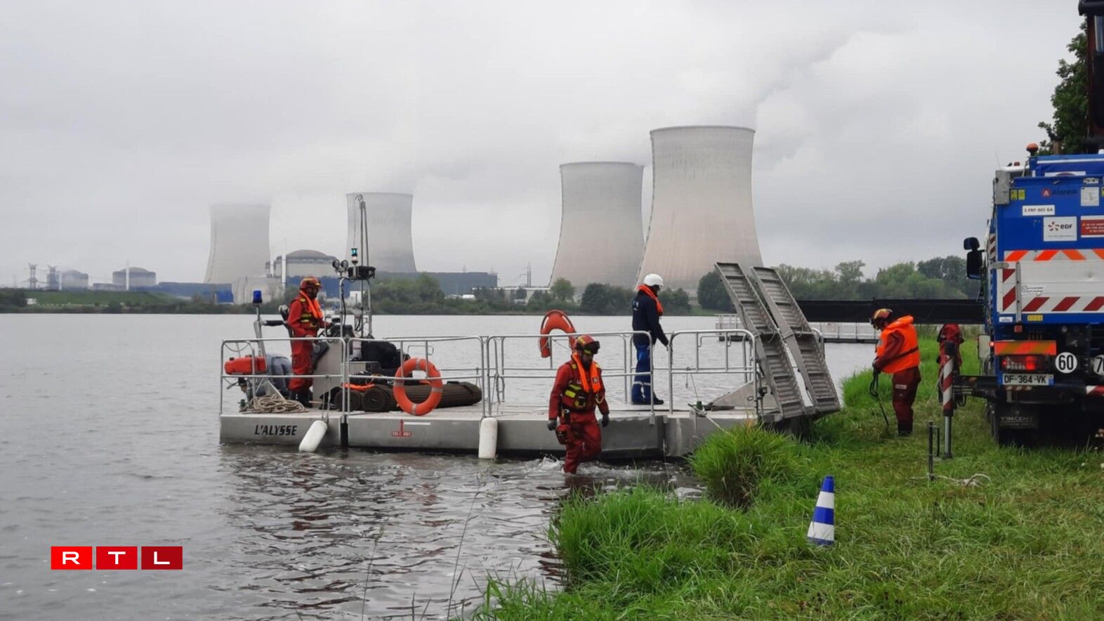 Pour la simulation de cette semaine à Cattenom, la FARN a mobilisé 75 hommes et une partie seulement de ses moyens matériels. Les équipes déployées sur la retenue d’eau du Mirgenbach s’entraînent à transporter le personnel de relève de la centrale et du matériel. Le lac simule une grande quantité d’eau qui empêcherait d’atteindre la centrale. Mais la FARN “doit être capable d’intervenir même si toutes les routes sont coupées et si le personnel ,e peut pas se rendre à la centrale”, explique Olivier Le Roux
