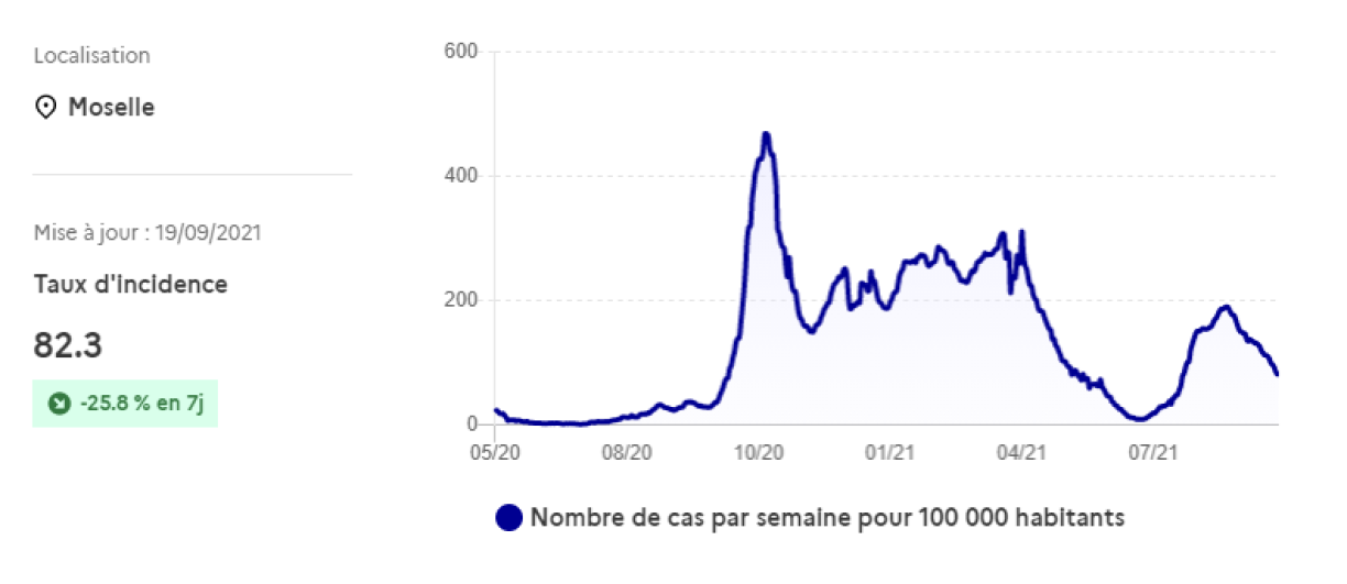 Au vu des chiffres -donc 12 jours avant que les élèves ne puissent retirer leur masque- les départements du Grand Est ne seraient pas concernés à la date de ce jeudi 23 septembre, excepté la Meuse (36,3) et les Vosges (46,7).