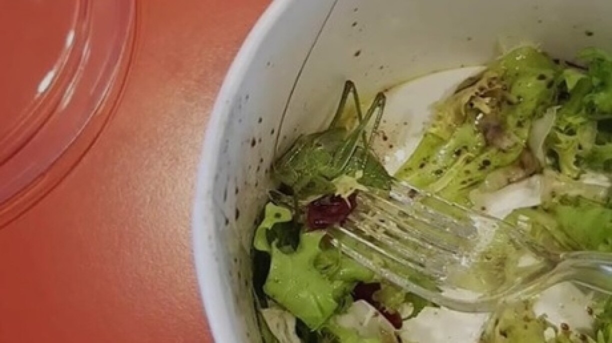 “Voilà ce que j’ai trouvé dans ma salade... Répugnant” commente Benjamin, en montrant l’insecte gisant mort au fond de sa commande.