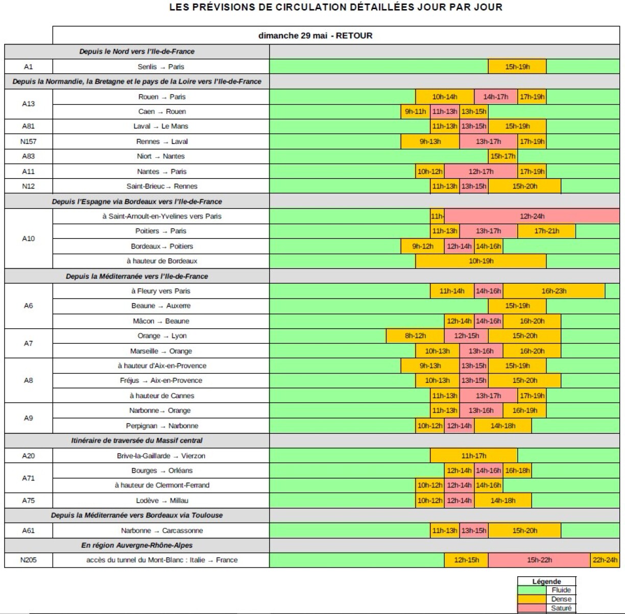 Bref, ce dimanche 29 mai est classé noir dans le sens des retours. De manière générale, les retours vers les grandes métropoles généreront des bouchons et des ralentissements sur les grands axes du pays.