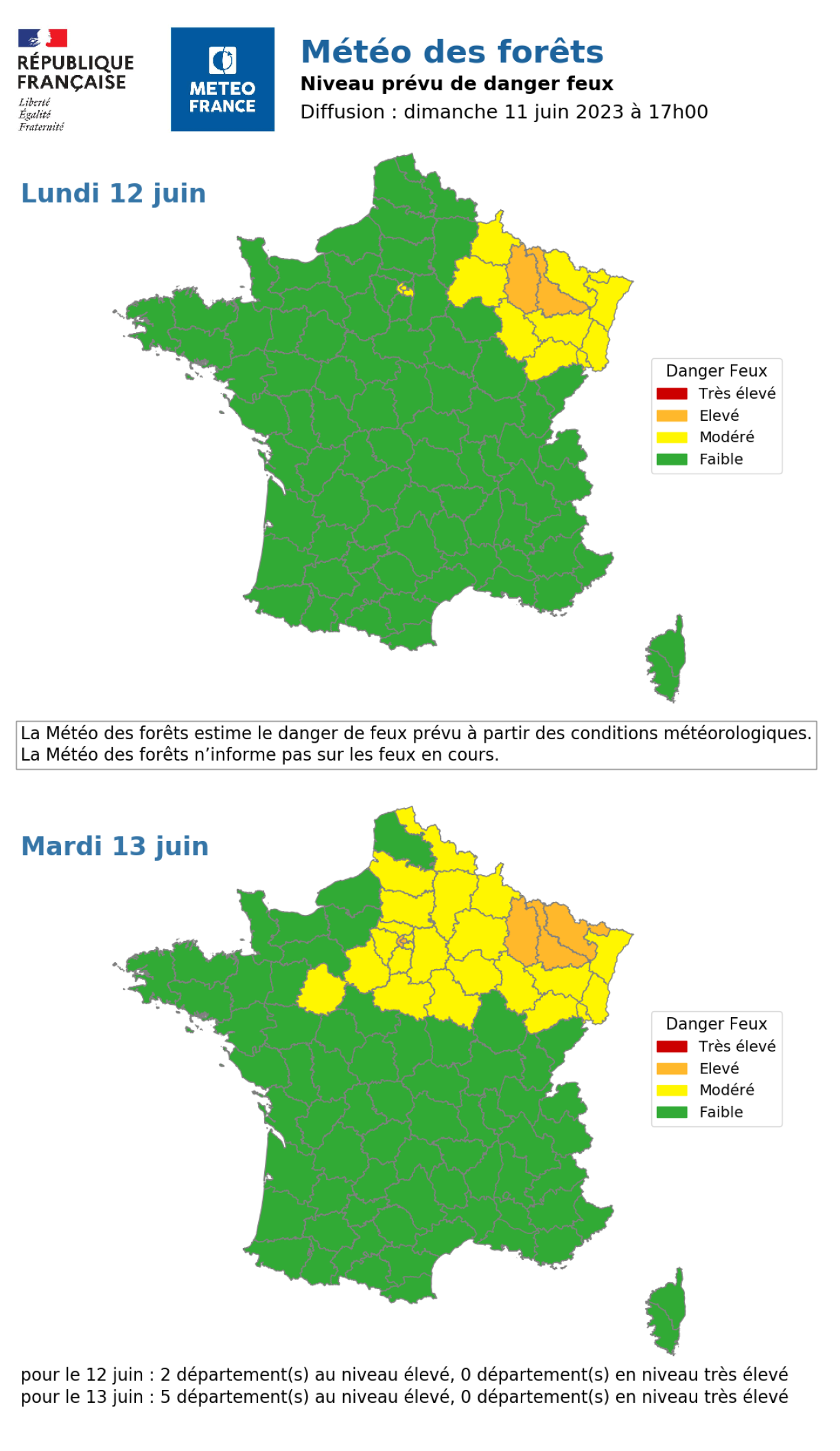 La “Météo des forêts indique un niveau de danger de feux de forêts établi à partir des prévisions météorologiques et l’état de sécheresse de la végétation” écrit Météo France.