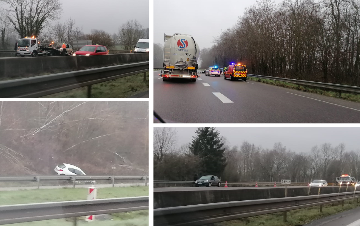 Plusieurs accidents se sont produits sur l’autoroute (mais aussi sur le réseau secondaire!) dès les premières heures de la journée. La faute à une fine couche de verglas invisible mais bien présente sur la chaussée. “Attention car c’est traître” prévient une internaute sur la page ITLF.