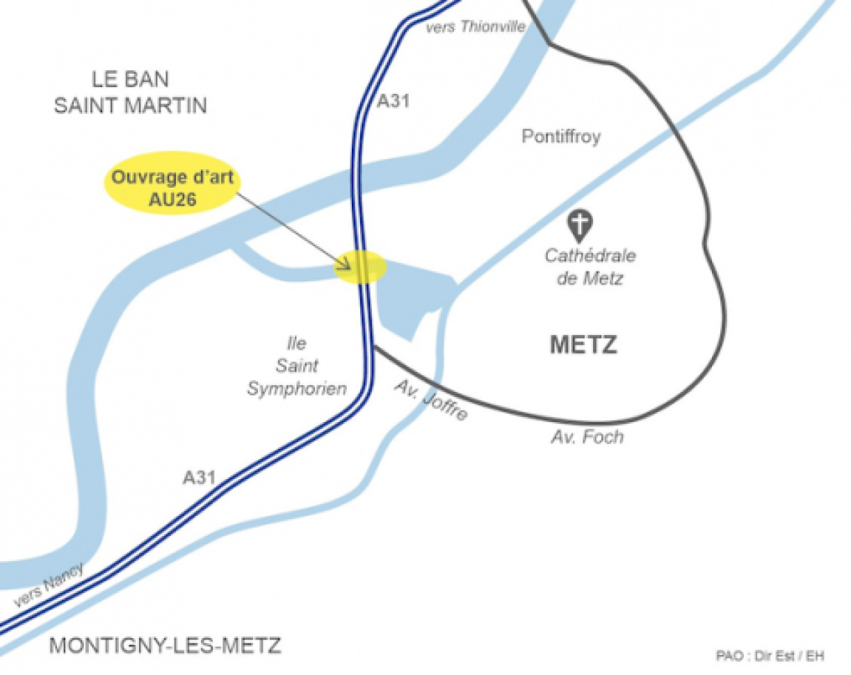 Des travaux de réparation sont nécessaires sur le pont de l’A31 à Longeville-lès-Metz, qui enjambe la Moselle entre le plan d’eau et l’Île du Saulcy. Des inspections ont révélé “des soucis d’étanchéité” sur le pont, ce qui a endommagé le béton.