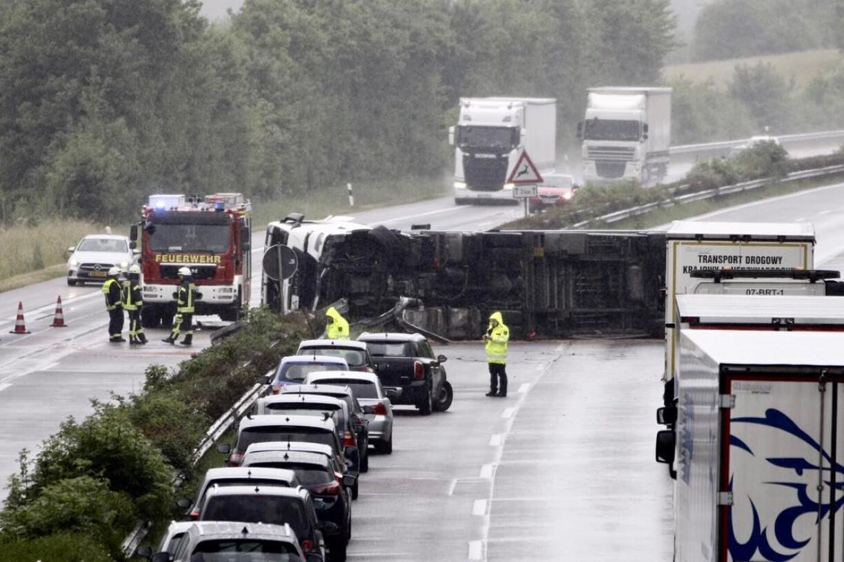 D’après le porte-parole de la police autoroutière, le camion-benne aurait fait une embardée avant de percuter le terre-plein central.