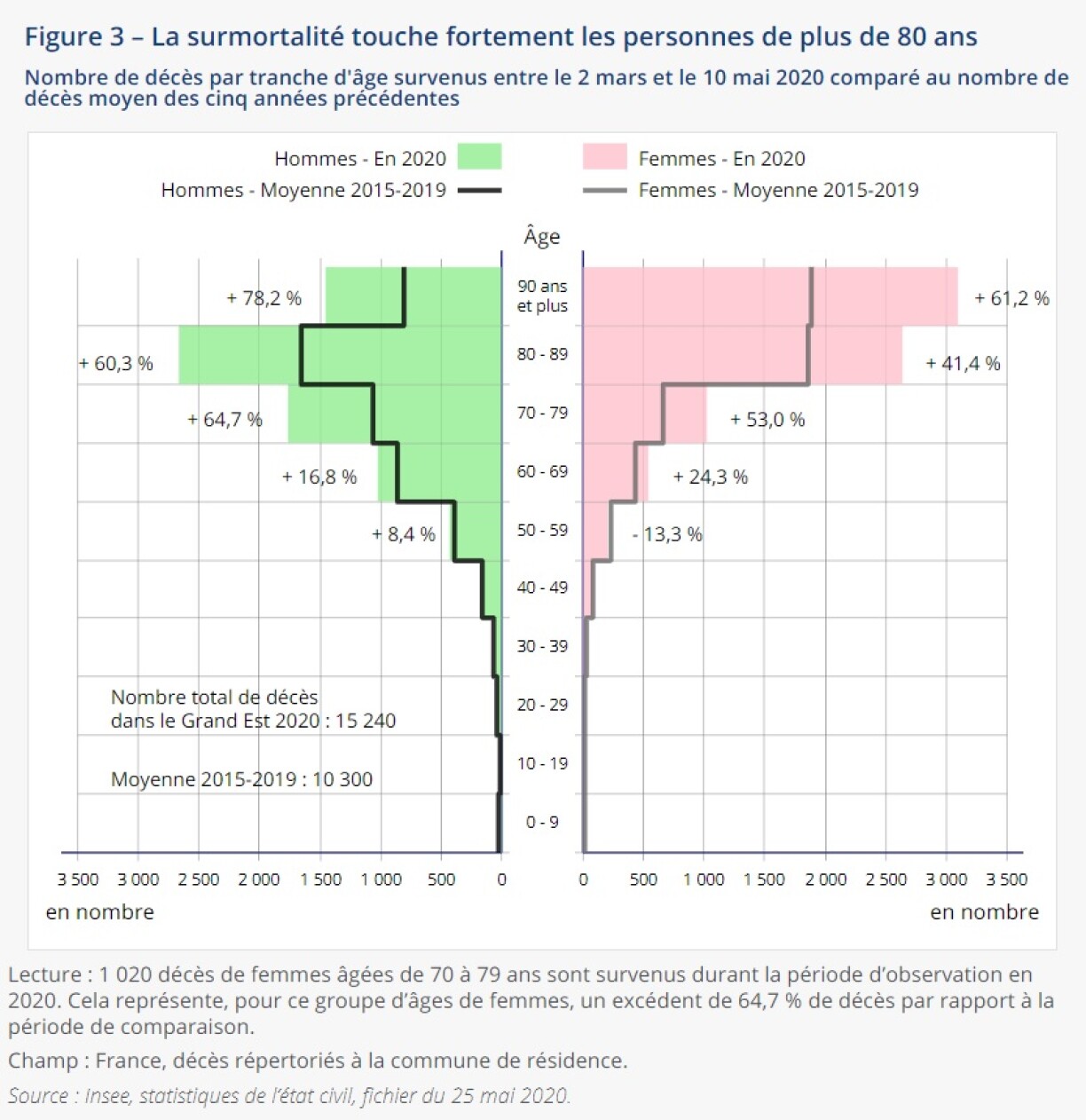 En termes de surmortalité - c’est-à-dire de décès supplémentaires par rapport à une période “normale” - le Grand Est est la 2e région la plus touchée de France.