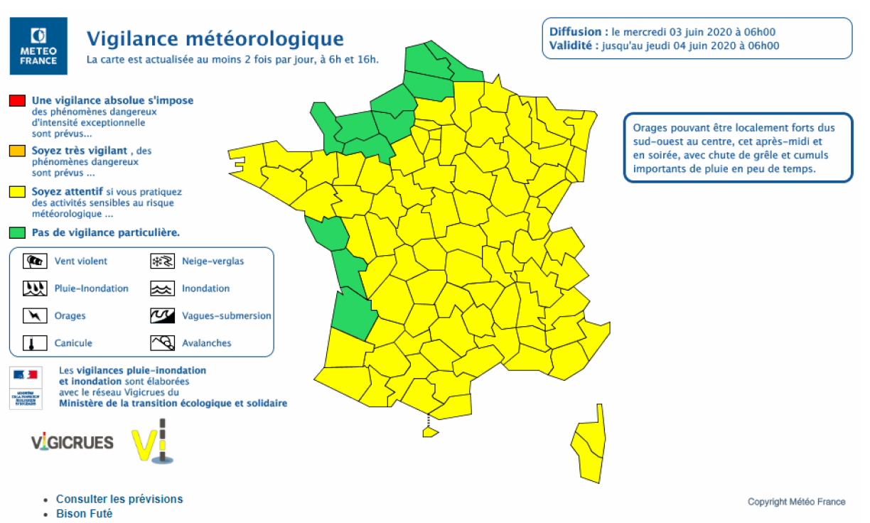 La région Grand Est a été placée en vigilance jaune par Météo France en vue des orages qui doivent toucher la région en début de soirée.