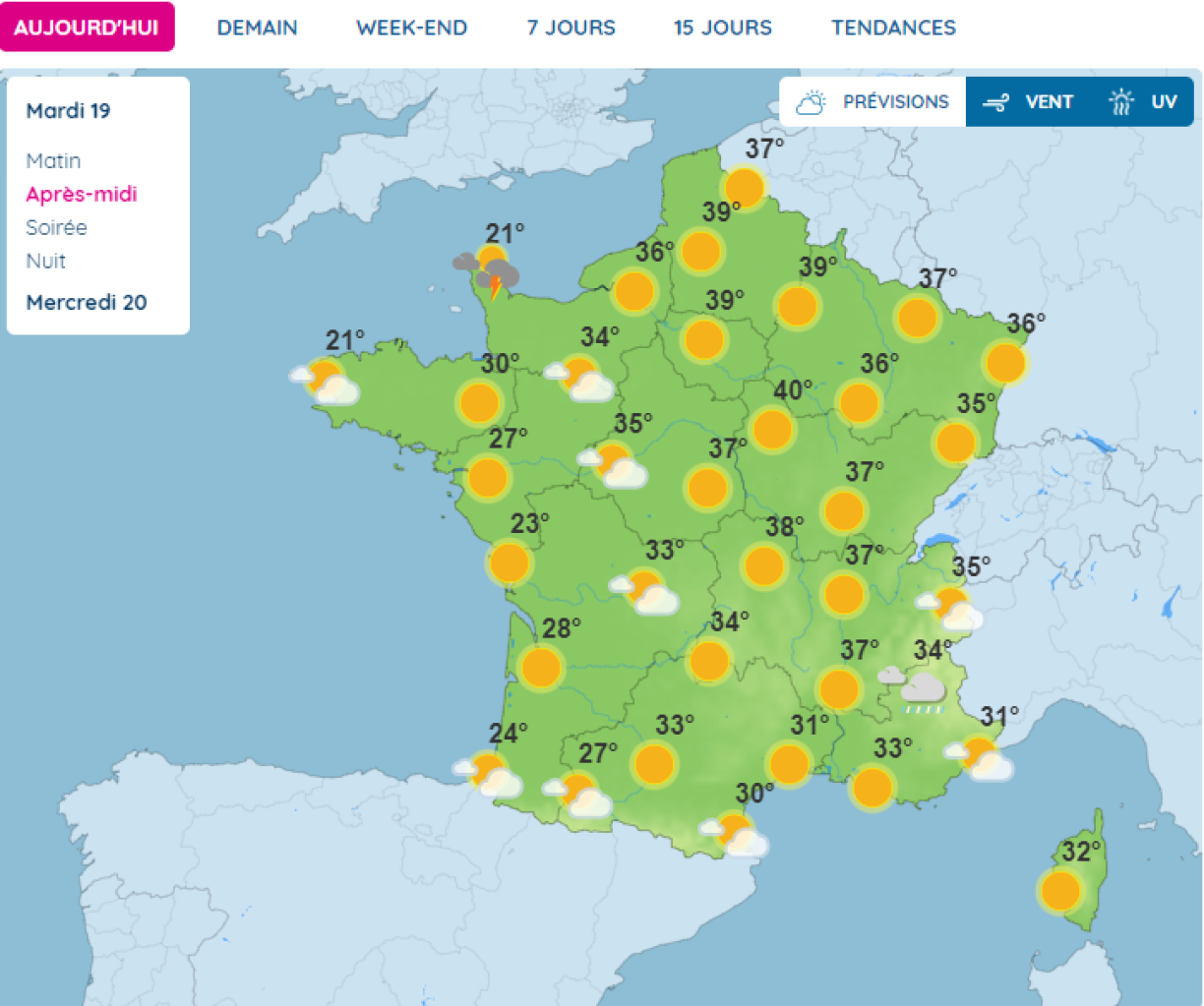 Et il ne fera pas que chaud l’après-midi. D’après les prévisions de Météo France, des températures comprises entre 32 et 35°C sont attendues en soirée puis entre 23 et 25°C la nuit.