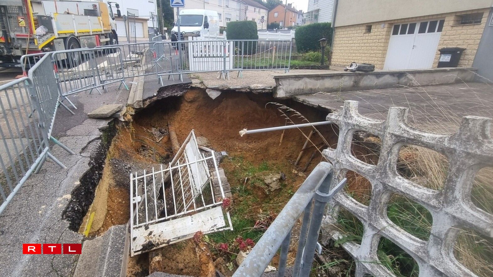 Le gigantesque trou est toujours là, rue François Raspail à Villerupt. Il est apparu le 2 janvier dernier, à cheval entre le trottoir et l’allée d’une maison. Ce jour-là, un habitant a eu chaud : la veille, sa voiture était encore garée à l’endroit où le trou est subitement apparu le lendemain !