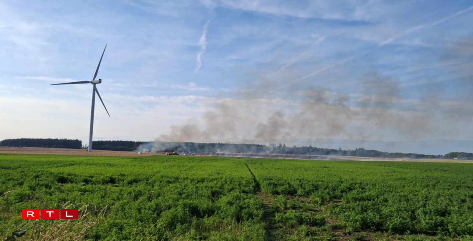 Il était au volant de sa moissonneuse-batteuse, dans des champs entre Tiercelet et Villerupt ce vendredi en fin d’après-midi, lorsqu’une fumée s’est dégagée sous sa machine. En cause, des étriers de frein qui auraient surchauffé, nous explique-t-il. Il n’en fallait pas plus pour qu’une étincelle mette le feu aux cultures alentours. L’incendie s’est vite propagé, dégageant une fumée visible à plusieurs kilomètres à la ronde.