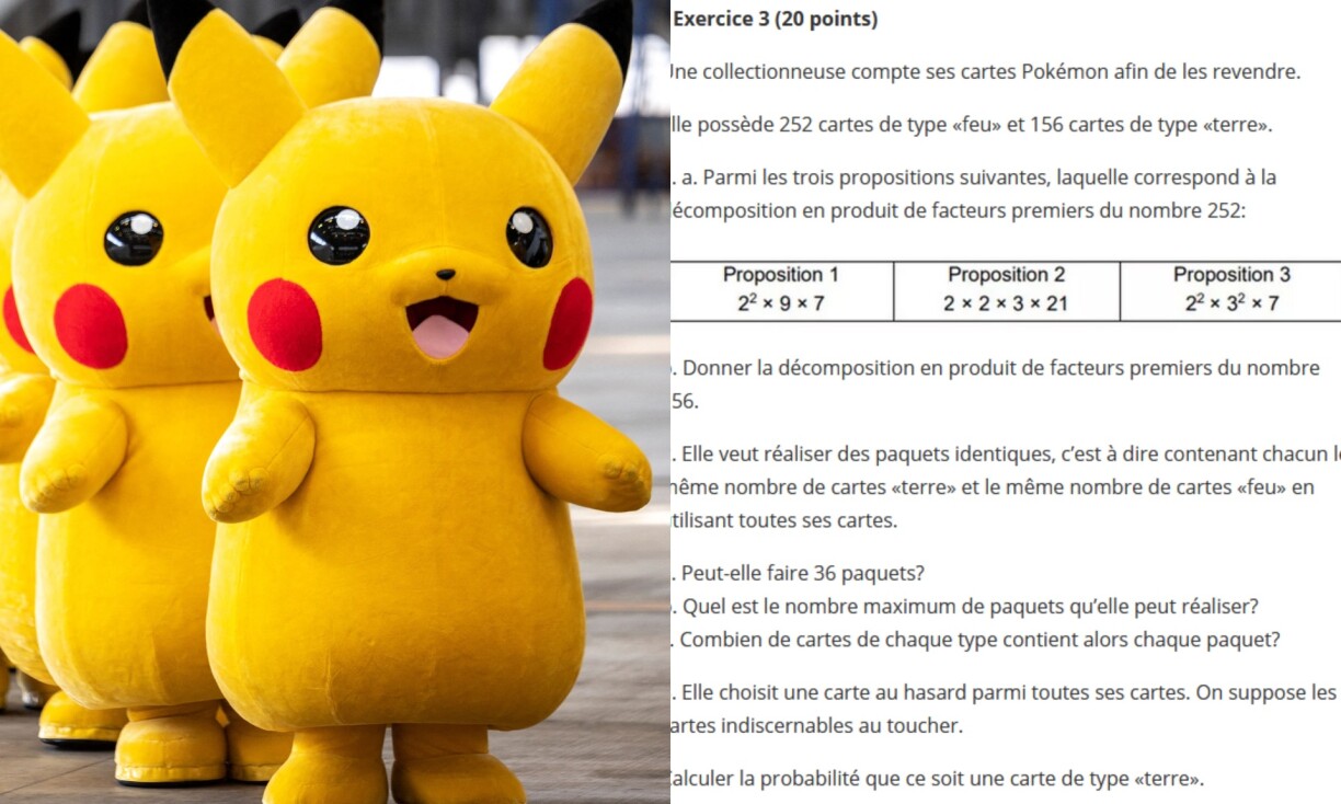 Qui aurait cru que les cartes Pokémon allaient s’inviter un jour dans une épreuve du brevet des collèges ? Pas grand monde. Et pourtant. Jeudi 30 juin, les élèves français ont dû se frotter les yeux devant l’énoncé de l’épreuve de mathématiques.