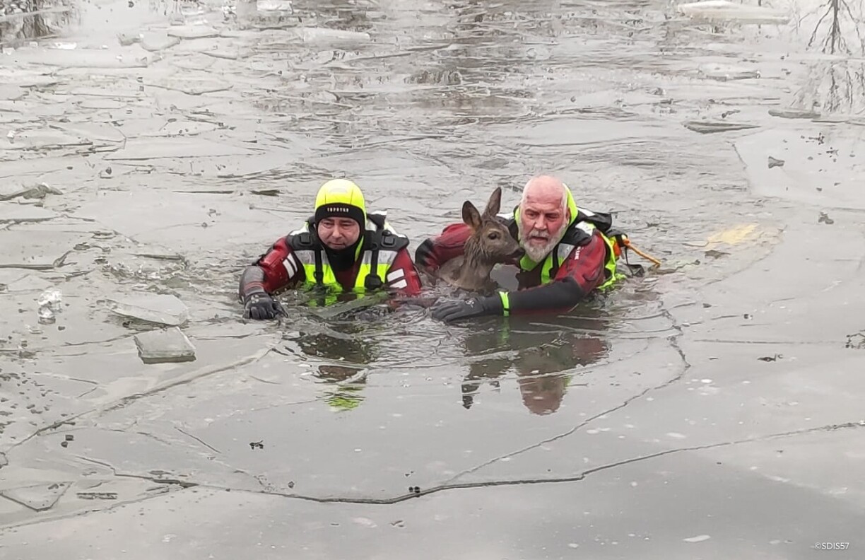 La raison de cette intervention ? La présence d’un chevreuil coincé au milieu de la glace. “Malgré une eau avoisinant les 10 °C et une progression rendue délicate par la glace en surface, les équipes ont fait preuve de sang-froid et de précision pour atteindre l’animal” écrivent-ils, en partageant quelques photos sur les réseaux sociaux. “Le chevreuil a finalement pu être secouru puis relâché dans son milieu naturel, sain et sauf après cette mésaventure.”