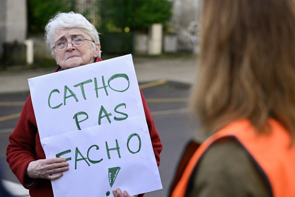 “C’est pas possible qu’on dérive comme cela”, a déclaré une paroissienne, Mariette Descamps, portant une pancarte où l’on pouvait lire “Catho pas facho”. “Je suis désolée de ce qui se passe aujourd’hui”, a-t-elle dit.